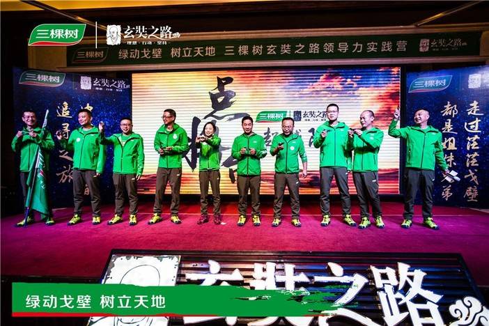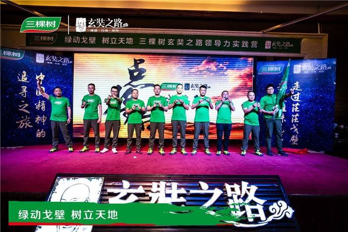 “绿动戈壁,树立天地” 5月26日,三棵树董事长洪杰率59名高管、合作伙伴齐聚敦煌点将台,共同吹响了2018年三棵树戈壁行的号角,开启一段理想、行动、坚持、超越的心路征程。未来四天,三棵树勇士将从这里出发,重走玄奘路,挑战112公里的荒漠极限,徒步穿越无人戈壁,再次创造属于三棵树的绿色传奇。