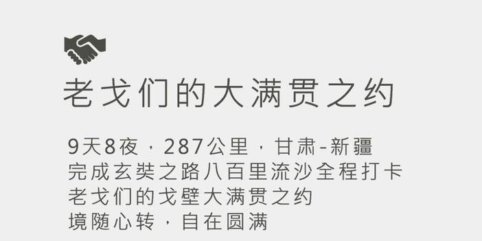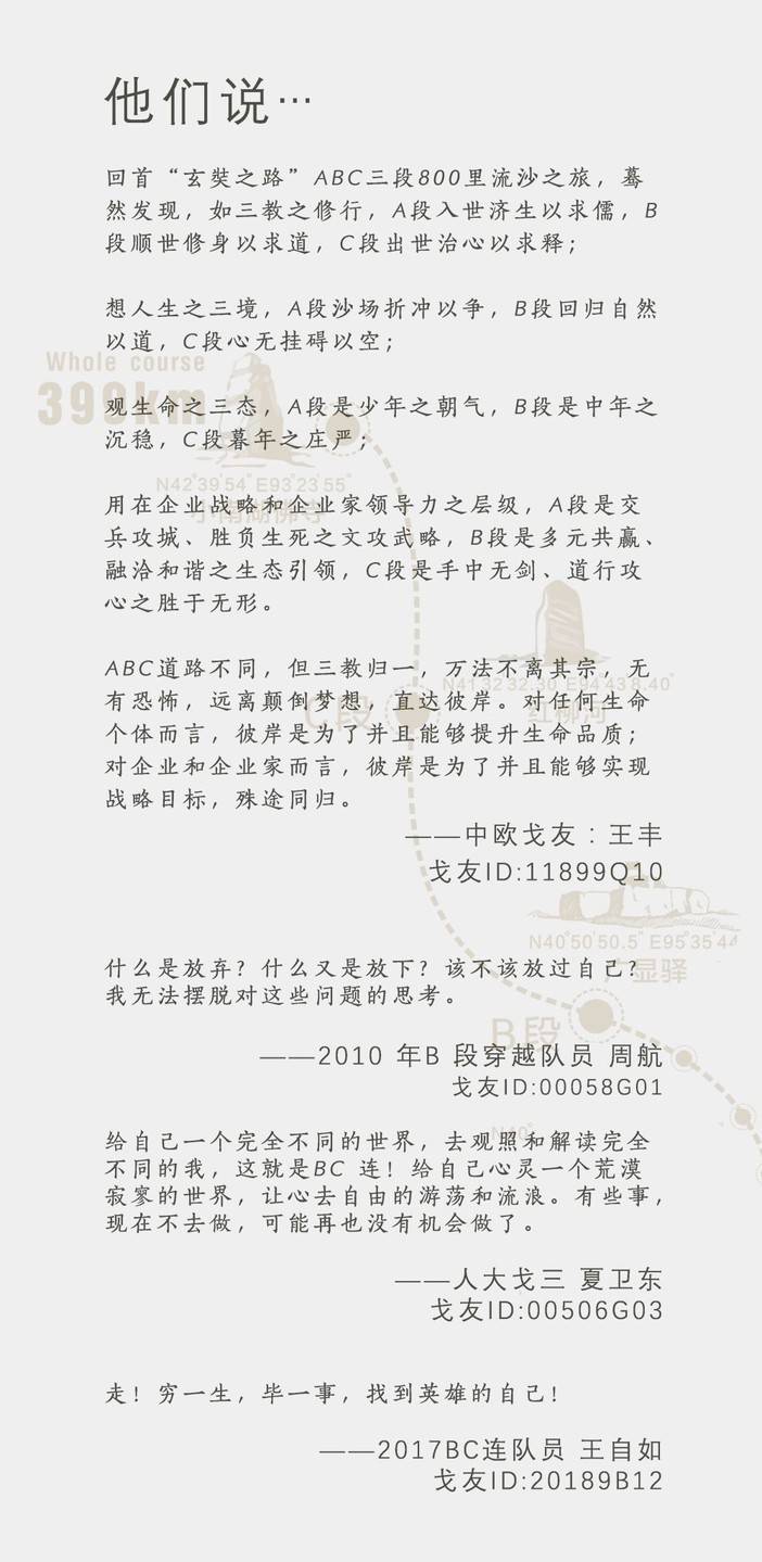 参与资格:玄奘之路A段完赛戈友,包括以下系列活动:商学院戈壁挑战赛、工商大道戈壁远征、玄奘之路创业戈壁行、刀锋领导力实践营