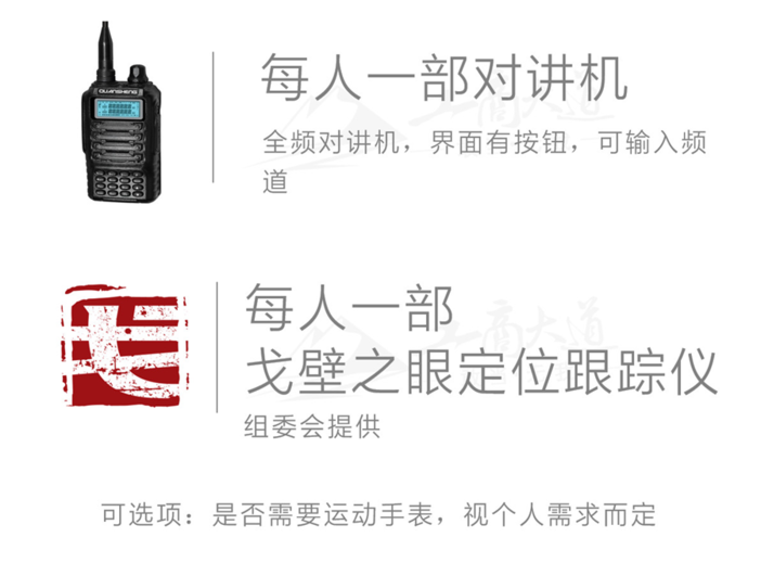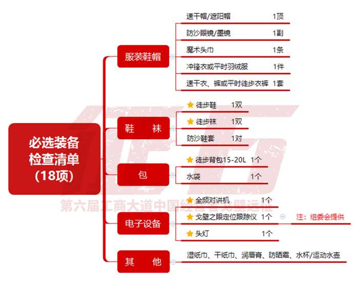 1.全程参赛组/品牌组装备清单