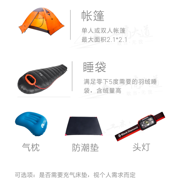 2. 睡袋至少满足温度在-5℃需求。