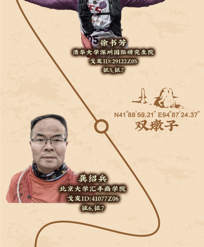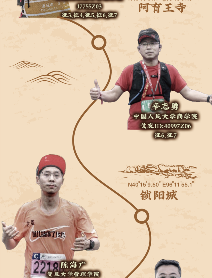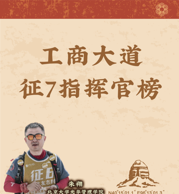 以此致敬征赛的领队们,领队(指挥官)被誉为“戈壁磐石”,他们是每一个参赛团队的中流砥柱,是新戈友的风向标杆,是戈壁路上默默奉献的基石,他们帮助每一位新戈友不断成长, 是这条精神征途上的最有力保障。