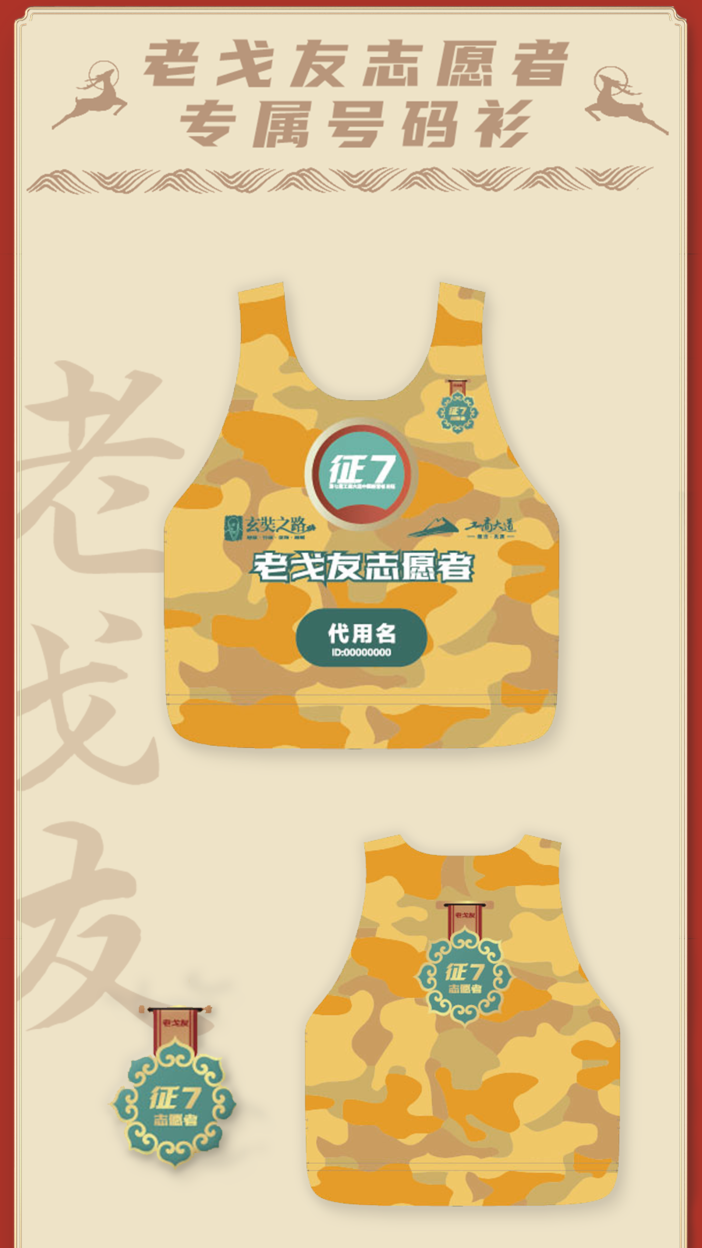 为此,组委会特别在征7设计了老戈友志愿者的专属号码衫,并精选了征7老戈友志愿者装备,致敬这群敢当无我的老戈友志愿者们……