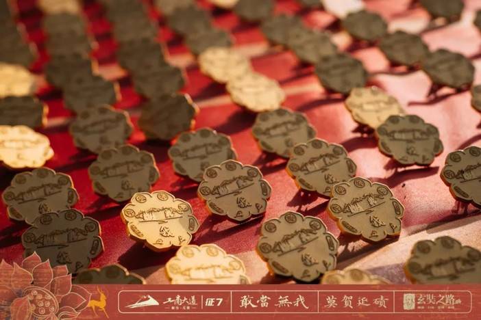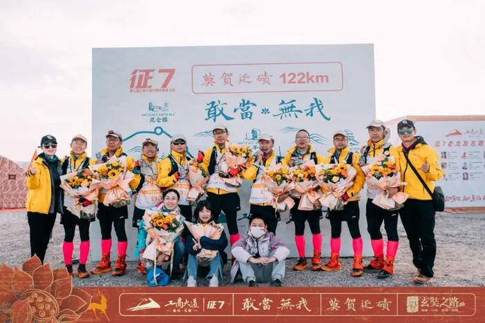 今天是征7的收官之日,完成本日征途者,可获得“敢”、“当”、“无”、“我”四枚勋章中的“我”字,并且根据金银铜奖时间门槛获得勋章,勋章分为金银铜三种颜色。抵达终点的戈友,纷纷将整套勋章佩戴在胸前,为自我超越的成就感到骄傲。