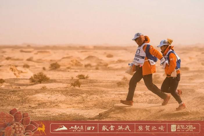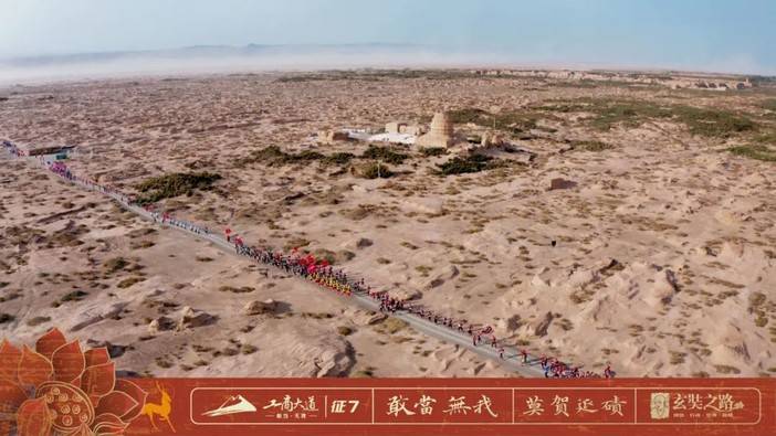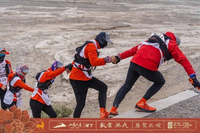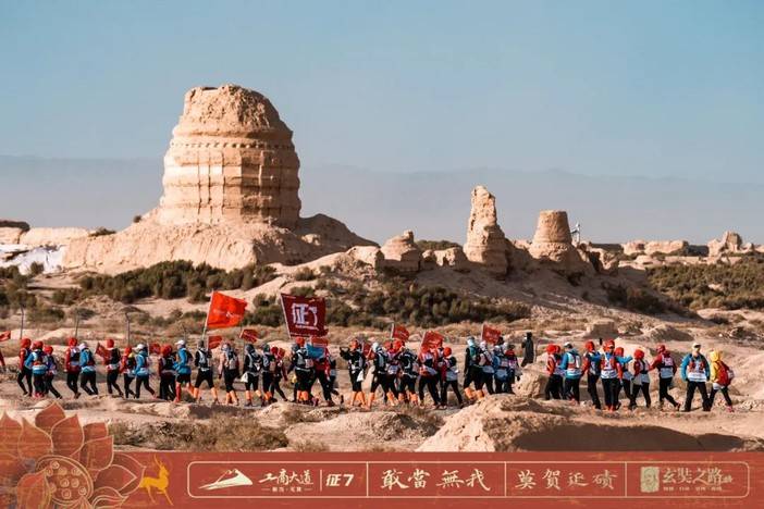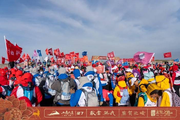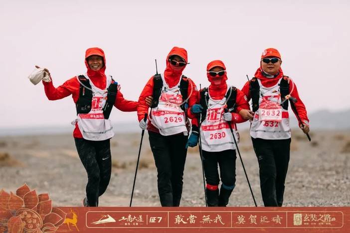 “工商大道征7”的赛期,由过去的4天3夜,变成了4天4夜,多了点将台仪式的一晚上戈壁露营时间,戈友们有更多时间熟悉彼此。4天的主题分别为“敢当”、“无我”、“不东”与“凯旋”,寓意为传承玄奘精神,走上征途的每个人,都是超越自我的英雄。