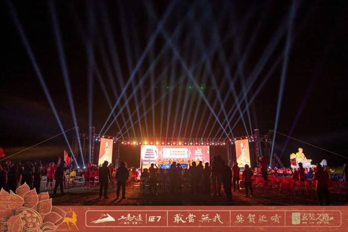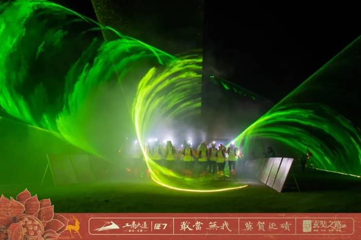10月6日是最后一个竞赛日,戈友们头顶银河,星夜启程。在出发仪式上,工商大道文化舞美氛围设计的牧音客谢建平老师带来了组委会一年前构思委托的“时空隧道”打造创意呈现,寓意蓝海的灯光照亮了繁星下的荒原,打开了一条奇幻的时空隧道,戈友们穿越时空隧道,以先贤的智慧来启发自己的智慧,在内心深处寻找到让生命得以攀援而上的巨大能量,进而以更积极、更健康、更持久的动力去拥抱生命中的更高挑战,面向不确定的未来,展示中国新一代经营者的风采。