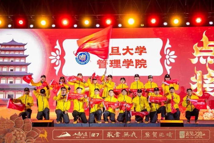 在10月2日的点将台仪式上,参加“工商大道征7”的各支队伍从玄奘法师石像身旁走过,在绚丽闪耀的舞台灯光与震撼动感的音乐中,从左右徐徐展开的LED大屏中走出,逐一登台亮相。