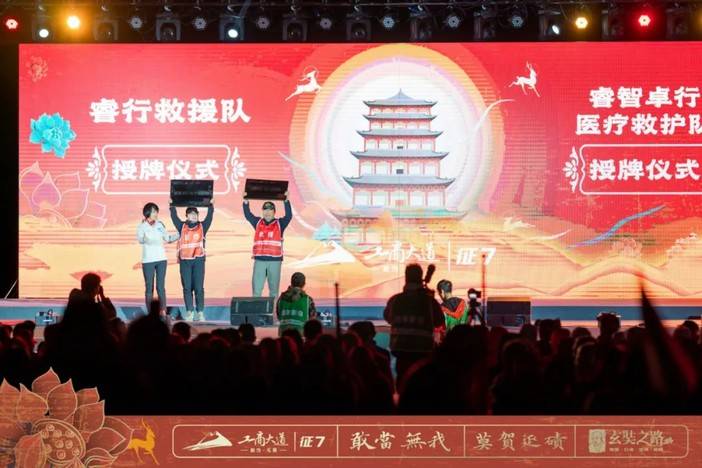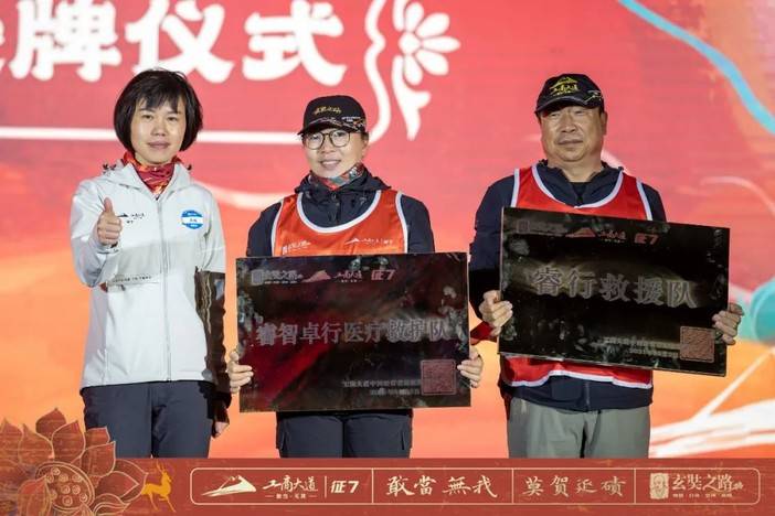 “玄奘之路”系列活动的第一支专业救援队伍——工商大道睿行救援队以及工商大道睿智卓行医疗救护队正式成立的授牌仪式,也在点将台上举行。组委会今年组建的这支救援队,全部由医护、民防、紧急救援等行业的资深人员组成,具有多年服务“玄奘之路”项目的经验。