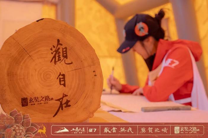 “观自在”,每日征程归来,洗净双手,虔诚发心,专注抄写《波若波罗密心经》,放下起伏的思绪与杂念,在这一刻内心空灵、感悟纯粹。感受玄奘法师西行途中,面对五天四夜滴水未进,也曾走了十里回头路,默念心经得到加持后的心无挂碍前行。