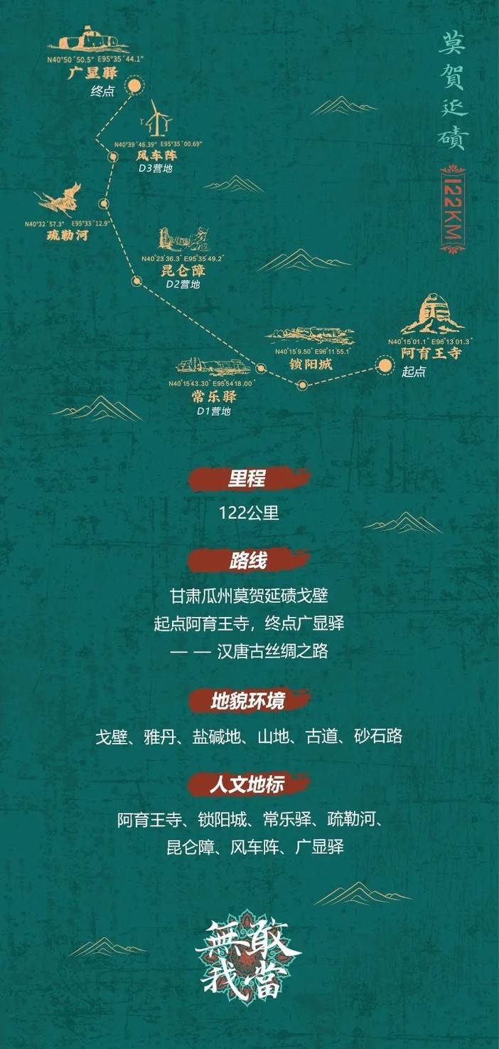 从起点阿育王寺开始,前段以风蚀雅丹地貌为主,后段主要为戈壁地貌。路段视野开阔,地形平坦,不必着急赶路。