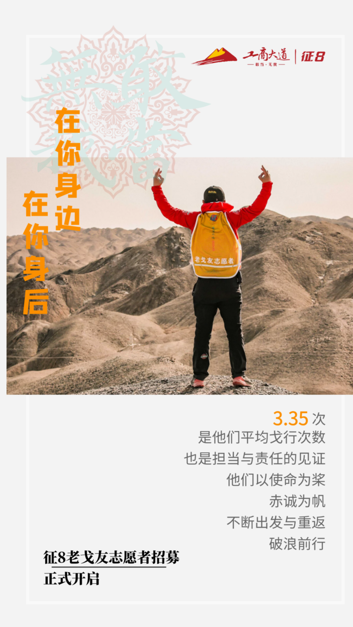 2、公开选拔:符合报名资格的戈友可以报名征8老戈友志愿者,组委会将根据《工商大道征8老戈友志愿者积分标准》为依据,选拔16人成为征8老戈友志愿者。