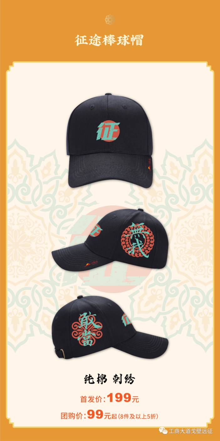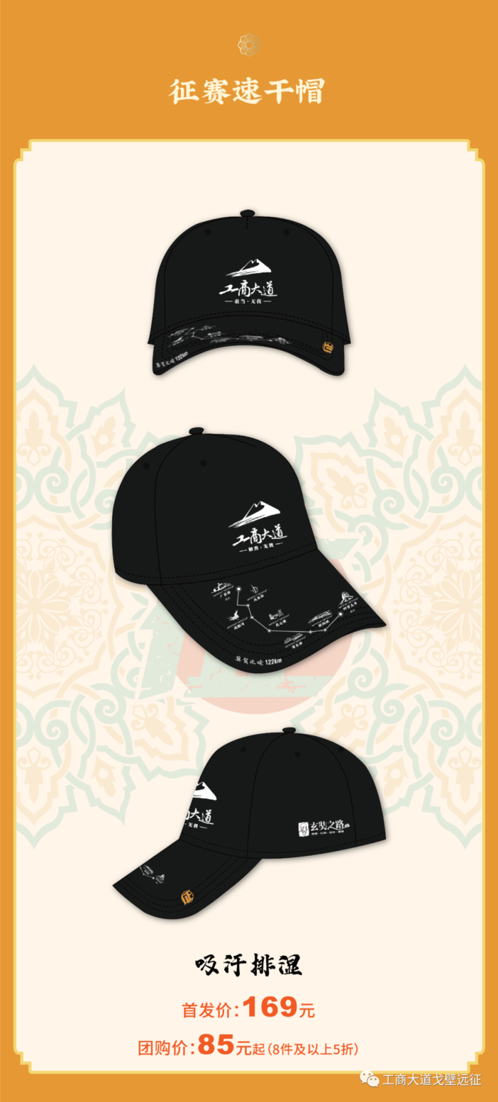 帽舌正中印制着征8路线,从阿育王寺出发,戈友们将经历4天4夜122KM远征到达广显驿。这是工商大道的终点,也是“心”的起点。