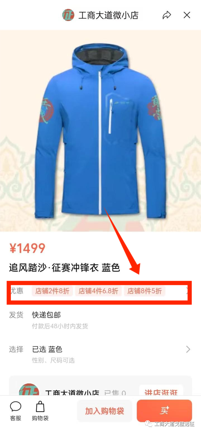 玄奘之路位于胸前,工商大道印刻在衣领口,寓意超越自我,笃定前行。衣领背后的征字采用了烫印夜间反光工艺,陪伴你在超越自我、重塑生命的路上。