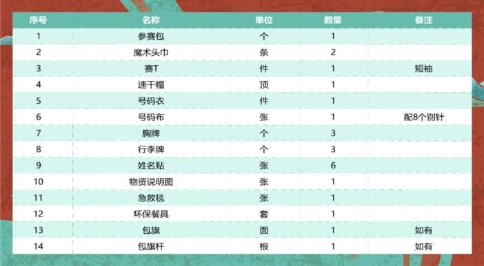 - 参赛包物资-
