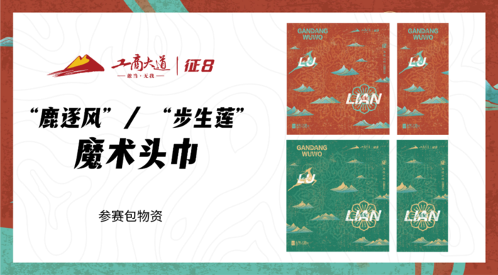 头巾上的步生莲取自敦煌壁画莲花图案,寓意戈友洗尽欲望,叩问内心。魔术头巾可以保护头发免受风沙伤害,也可以作为面罩避免脸部晒伤,还可作为擦汗巾。