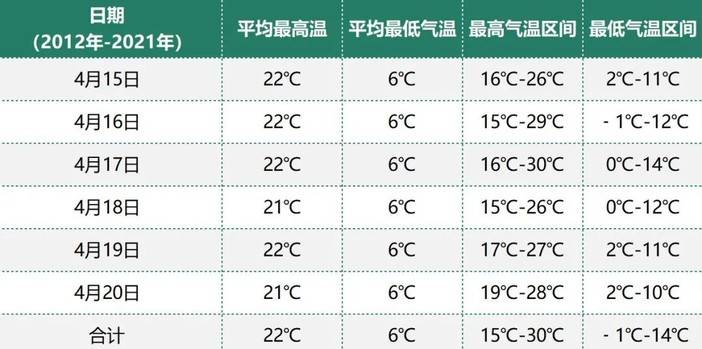2012-2021年4月15日-4月20日每日气温情况