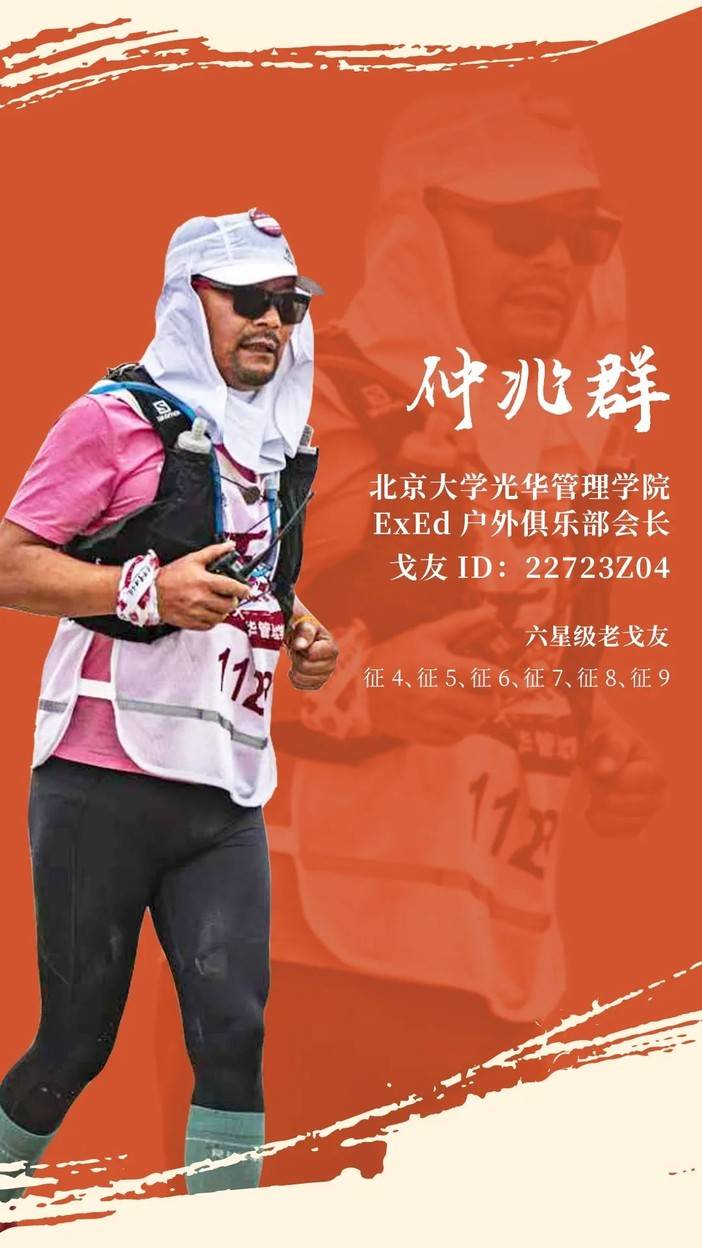 ![]() (按姓氏笔画排序) ● 北京大学光华管理学院ExEd户外俱乐部会长:仲兆群 ● 中欧校友AMP俱乐部征友会会长:汪友宝 ● 北京大学汇丰商学院EDP征戈会会长:刘尊 ● 中国人民大学校友会商学院分会EE研修项目管理委员会戈友俱乐部理事长:辛志勇 ● 中山大学中戈荟理事长:陈富雄 ● 工商大道赛事主席:袁媛 ● 工商大道赛事总监:黄少辉 |