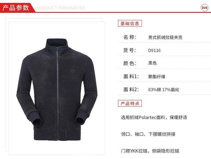 kroceus地球科学家男式抓绒拉链夹克D9116