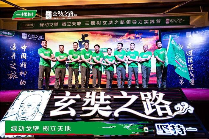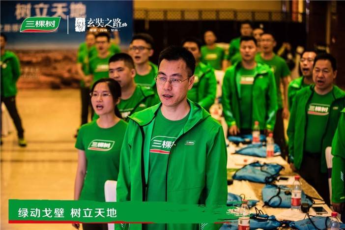 “绿动戈壁,树立天地” 5月26日,三棵树董事长洪杰率59名高管、合作伙伴齐聚敦煌点将台,共同吹响了2018年三棵树戈壁行的号角,开启一段理想、行动、坚持、超越的心路征程。未来四天,三棵树勇士将从这里出发,重走玄奘路,挑战112公里的荒漠极限,徒步穿越无人戈壁,再次创造属于三棵树的绿色传奇。