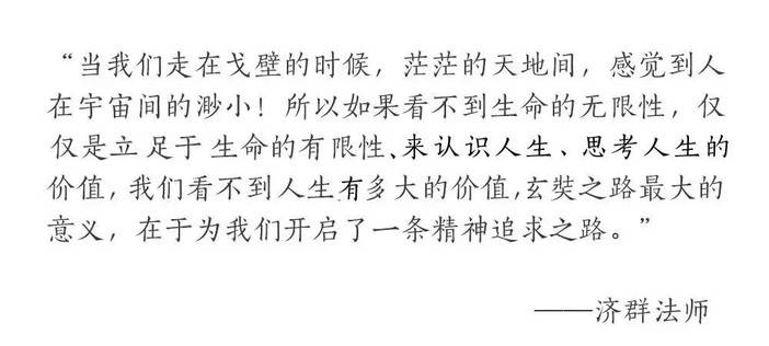 同样我们去走戈壁,重走玄奘路,也可能带着世俗的理想,比如锻炼身体,或者去户外徒步健身,甚至竞技,有各种各样的理想,也有各种各样的行动和坚持。但是我们有没有去关心和考虑,玄奘的理想到底是什么?玄奘的行动和坚持到底是什么?我觉得我们的很多戈友好像并不是特别关心。