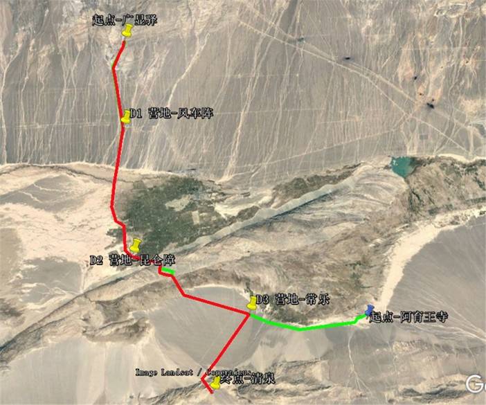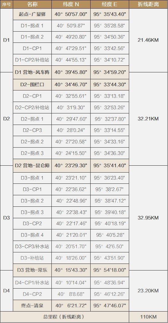 具体线路:自广显驿出发,经风车营地、昆仑障营地、常乐营地,终点为戈壁清泉。工商大道·征5赛事路线坐标详见“附件1”,比赛路线示意图见“附件2”。