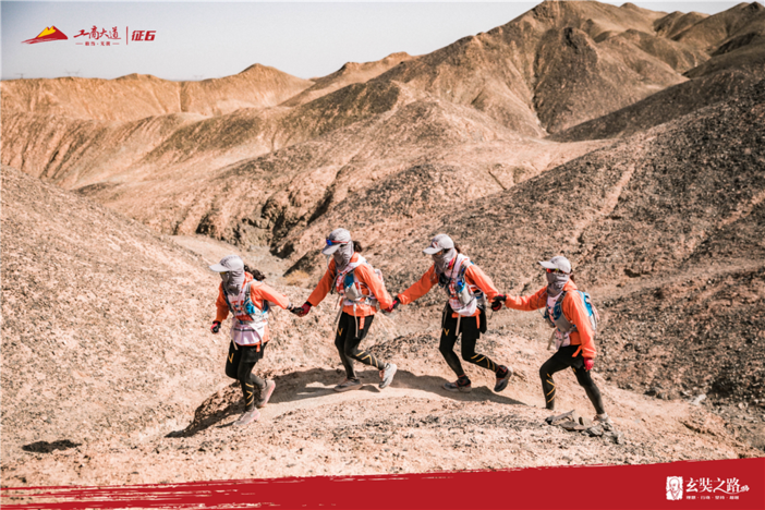 玄奘之路上,汇聚着不同院校和企业的戈友,当狂风呼啸、砾石翻滚、尘土飞扬时,他们跨院疆界,结伴同行,丝毫不吝惜加油声,相互鼓励,相互支撑,相互拥抱。